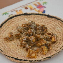Nougat gasy : Sucre, miel, cacahuète, gingembre frais, curcuma, cannelle, poivre de madagascar. Allergène : arachide